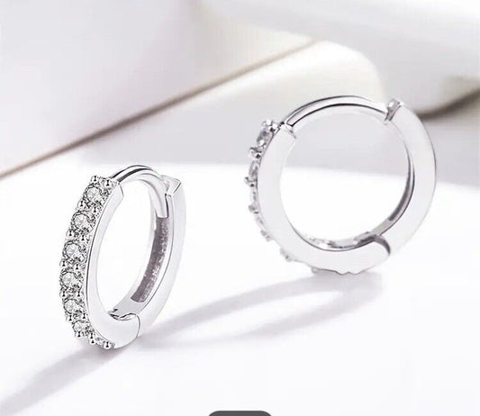 925 Sterling Silver Zircon 8mm Hoop Earrings