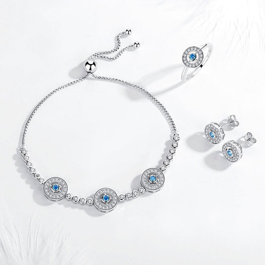 Evil Eye 925 Sterling Silver Round Blue Jewellery Set