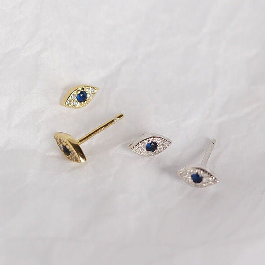 Evil Eye 925 Sterling Silver 18K Gold Plated Mini Earrings