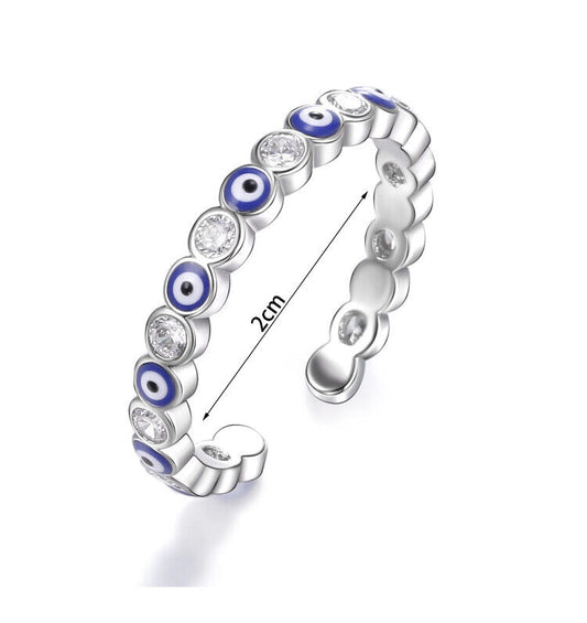 Evil Eye Greek Mati 18K Gold Plated Adjustable Open Ring