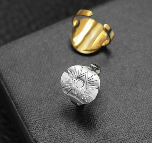 Evil Eye Greek Mati 14K Gold Stainless Steel Round Adjustable Ring