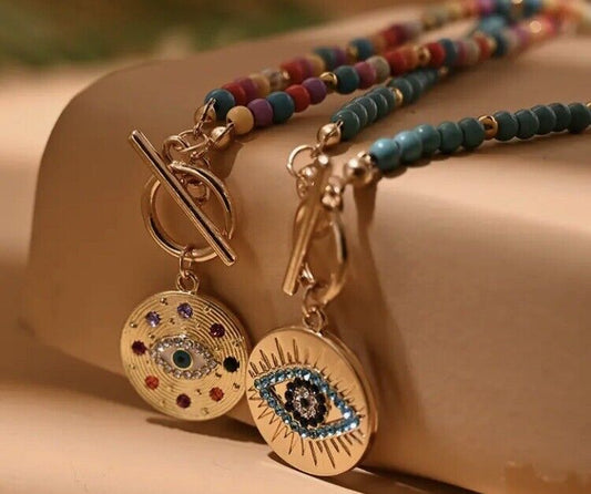 Evil Eye 4mm Stone Beads Round Charm Pendant Chocker Necklace