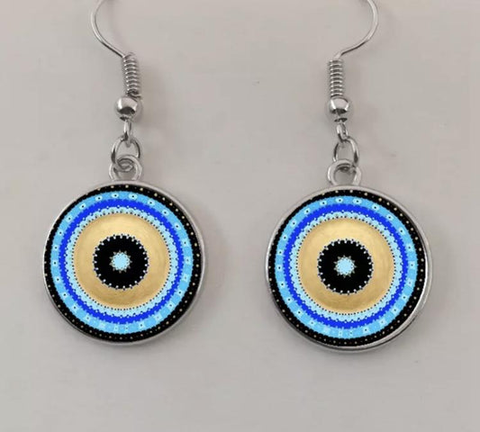 Evil Eye Greek Mati Handmade Round Glass Dangle Drop Hook Earrings