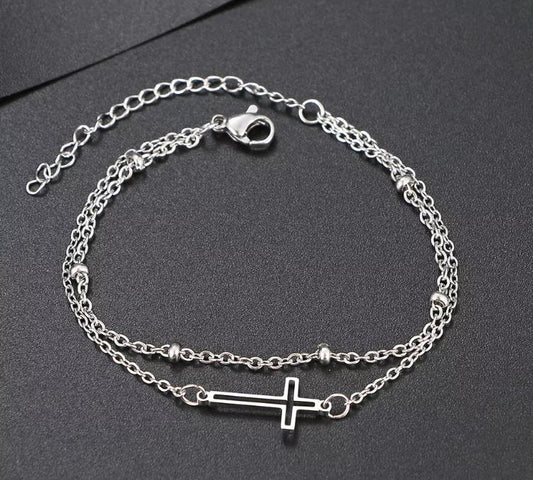 Stainless Steel Double Layer Cross Charm Chain Bracelet