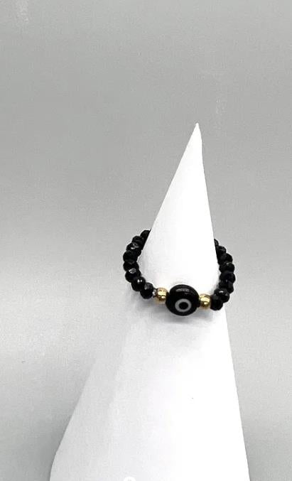 Evil Eye Greek Mati Handmade Natural Stone Beaded Stretch Rings