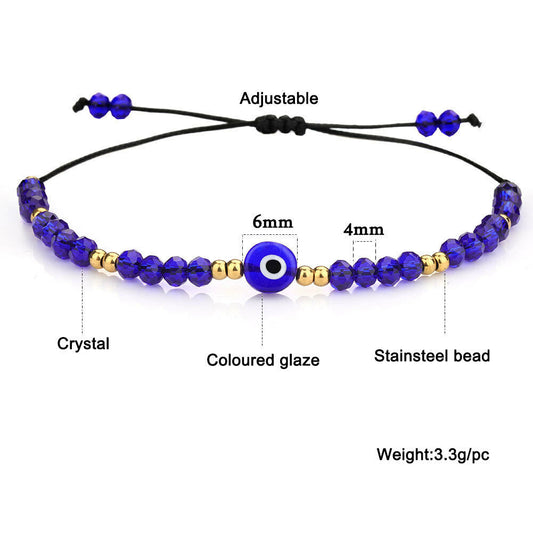Evil Eye Greek Mati Handmade Crystal Bead String Braided Bracelet