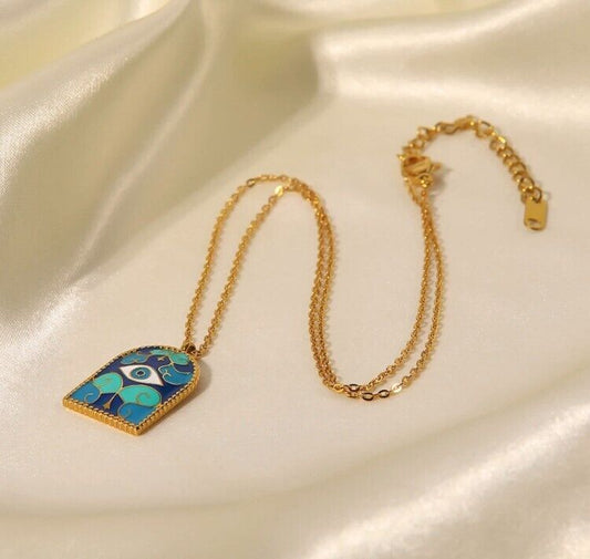 Evil Eye Stainless Steel Blue Enamel Arch Pendant Necklace